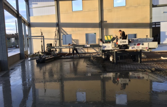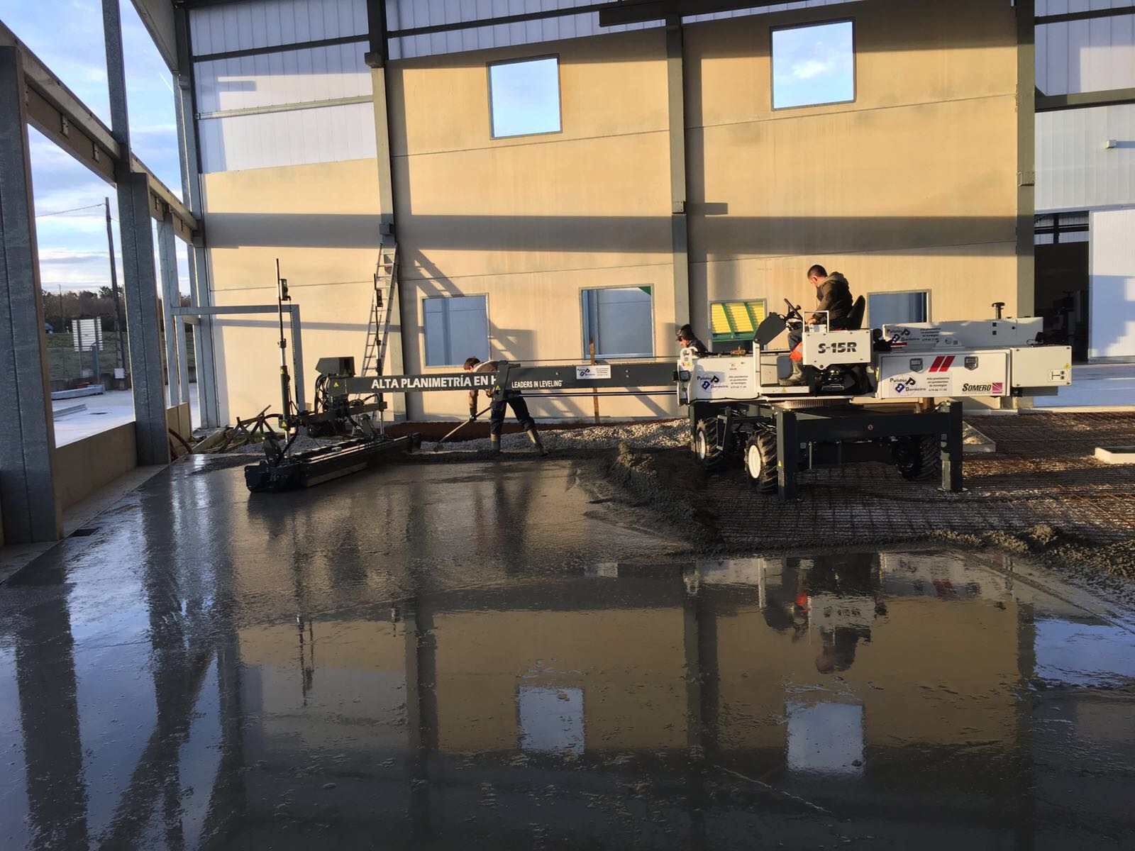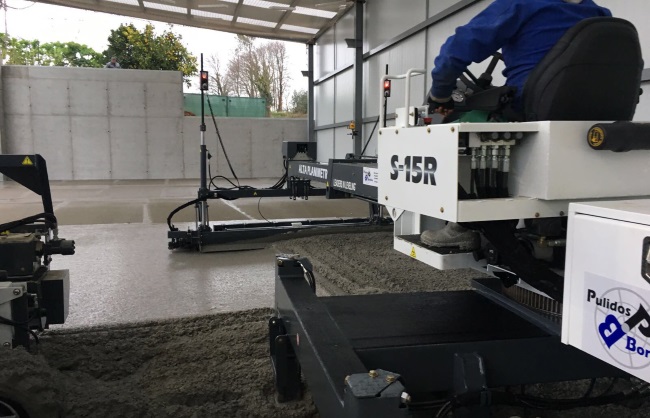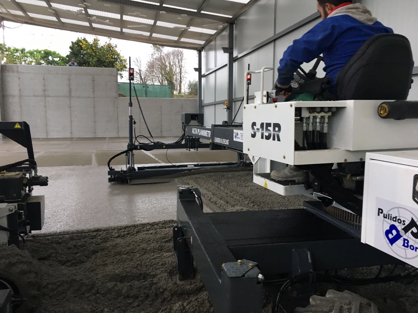Esta técnica se consigue utilizando la extendedora S-15R LaserScreed que consiste en una máquina der hormigonar con un brazo extendible de 6 metros de largo y con una regla niveladora y vibrante en la cabeza de 3 metros de ancho en la cual lleva dos laseres receptores los cuales reciben la señal de un laser base que emite la señal con el nivel final del pavimento alcanzando grandes rendimientos con excelentes planimetrias en las soleras.