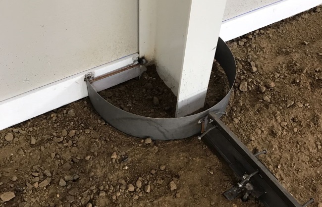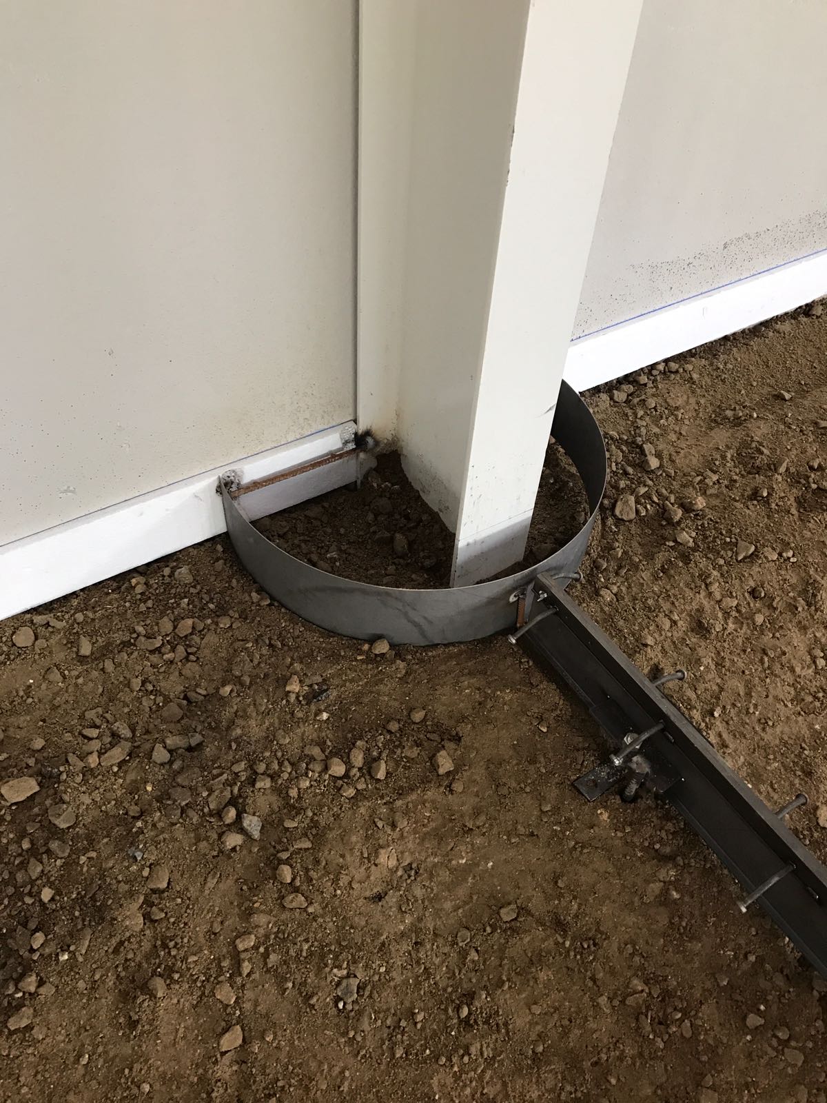 Se colocaria un circulo de hierro con la altura final de la solera y asi se hormigonaria al mismo timepo que la solera quedandose el circulo para siempre protegiendo las fisuras de las aristas.