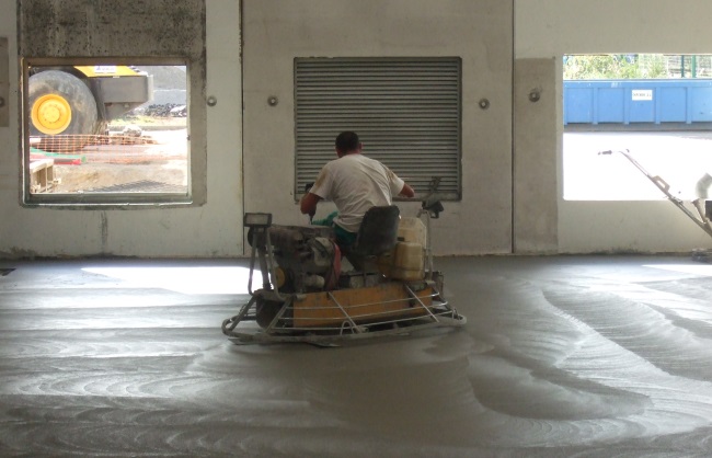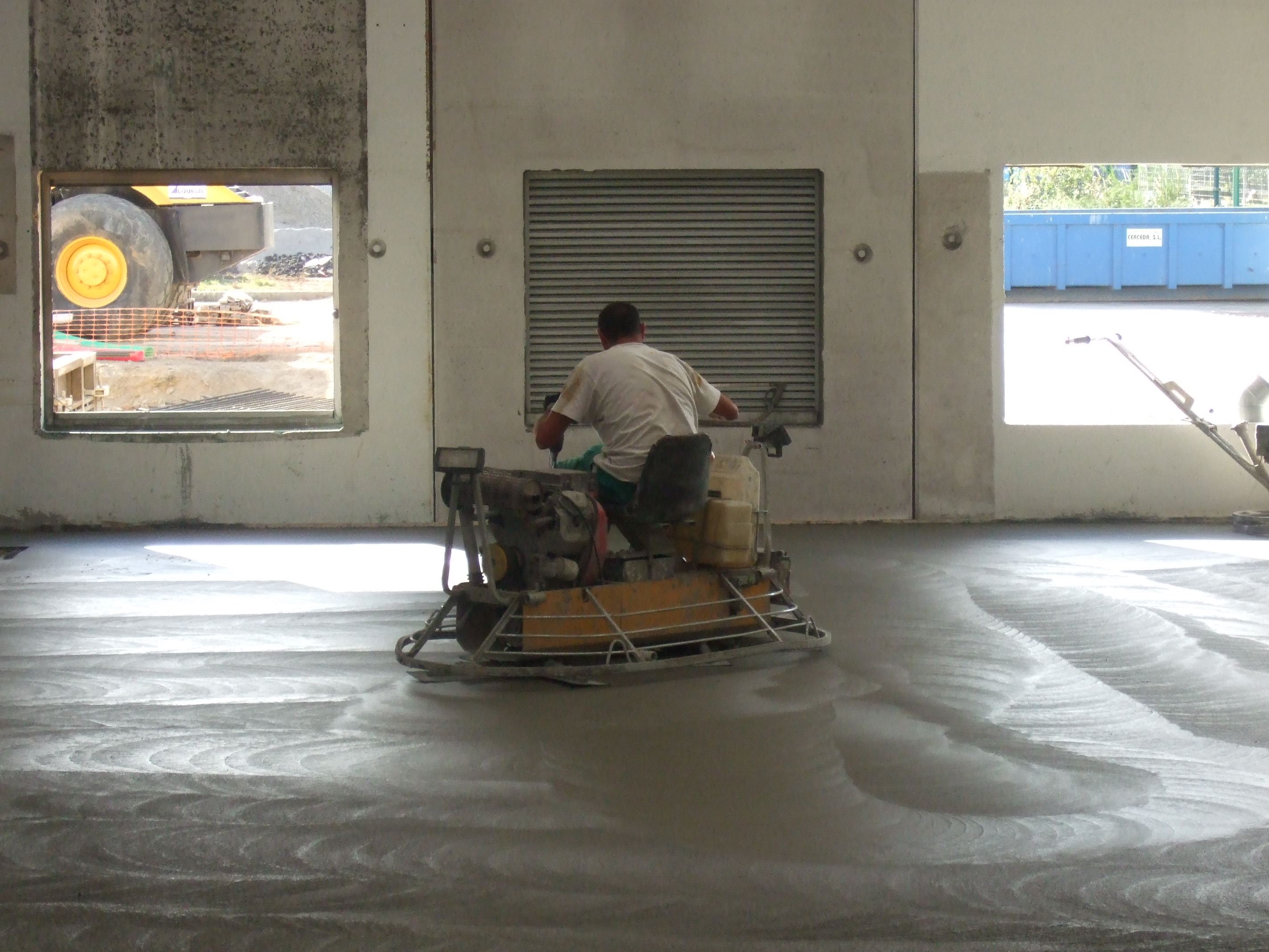 Cuando el hormigon empiece a endurecerse procederemos a pasarle las allanadoras dobles de 120 y de 90 asta conseguir un acabado totalmente liso brillante y plano.